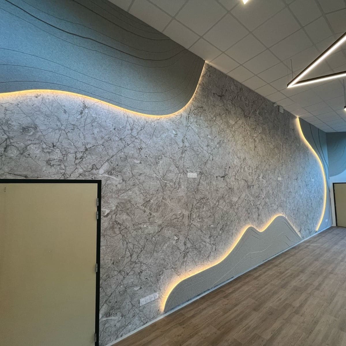 Bij 3D-effecten draait het om reliëf: vormen, structuren of patronen die letterlijk diepte geven aan het oppervlak. Denk aan akoestische wanddecoratie met golvende lijnen, geometrische figuren, organische vormen of zelfs topografische ontwerpen.