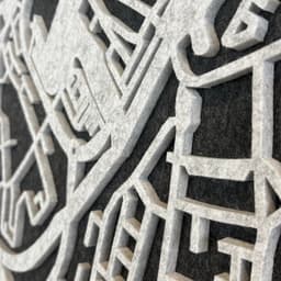 Van plastic fles naar akoestisch paneel: de EASYfelt City Map is een uniek kunstwerk voor aan de muur! De City Map is een akoestisch wandpaneel met een ontwerp van een land, stad of dorp. Het is gemaakt van PET-vilt en werkt absorberend. De City Map heeft twee lagen. Je kiest een kleur voor de zelfklevende achterplaat en een kleur voor de voorplaat. Het stadsontwerp wordt uit de voorplaat gesneden en op de achterplaat bevestigd. De laatste afbeelding geeft het eindresultaat in 3D het best weer.
