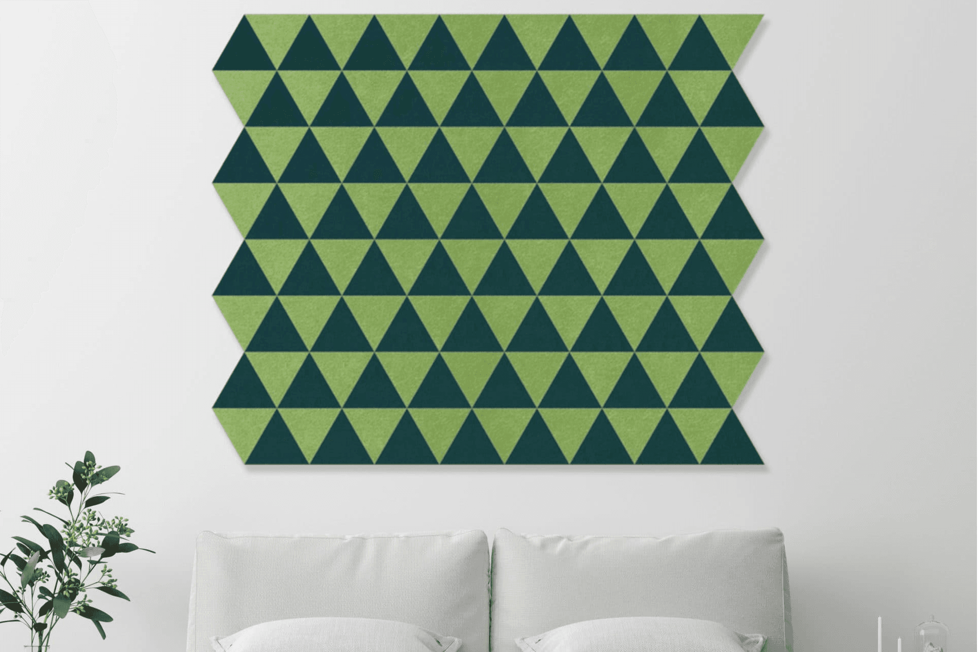 De Stick Triangle is een zelfklevend akoestisch wandelement dat geluid absorbeert en je ruimte een mooie uitstraling geeft. Hoewel het geluid dempt, is het vooral geschikt voor het verminderen van lichte galm. Met de zelfklevende achterkant monteer je de panelen eenvoudig zonder extra gereedschap. Dit speciale driehoekige ontwerp maakt het gemakkelijk om unieke, moderne patronen te maken.